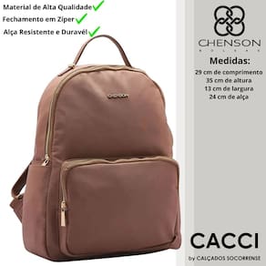 Mochila Feminina Chenson Mochila Microfibra Costas 8184126, fechamento em fecho-éclair, forro em tecido personalizado, compartimento para pequenos objetos, amplo espaço, bolso frontal com fecho-éclair, alça em poliuretano, acabamento em costura contrastante.