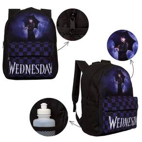 Mochila Escolar Infantil Wandinha possui alça de mão reforçada. Agora você pode levar sua mochila no seu dia a dia ou acompanhar você na escola. Sua abertura maior se dá por zíper com puxador. Na parte de dentro possui amplo espaço para a guardar diversos materiais como cadernos, livros e estojos. Na parte da frente, possui bolso com zíper para a guardar pertences de menor tamanho e bolsos laterais.