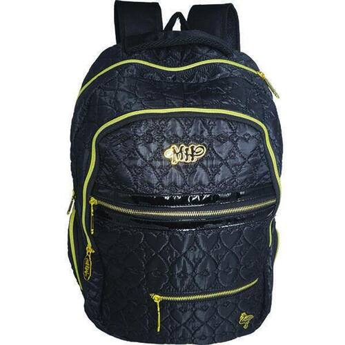 Mochila Feminina Juvenil Notebook M4258 Preto Cor: preto Uma Mochila grande, que aguenta peso, leva seus livros e ainda seu notebook Costas acolchoadas e rígida para acomodar adequadamente o seu Notebook.Compartimento principal com zíper duplo e personalizado.Compartimento frontal fundo e espaçoso e fecho em zíper personalizado.Bolsos frontaiscom zíper.Bolsos laterais com zíper.Compartimento interno para notebook, com fecho.Fundo reforçado e acolchoado.Mochila toda forrada.Material poliéster com designe metalassê.Ziperes e logo com detalhes dourados deixando a mochila ainda mais top.Alças acolchoadas com tecido respirável e ajustáveis.Alça de mão fixa. Tamanho aproximado em cm:45x31x15