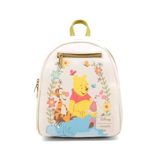 Mantenha seu néctar das flores seguro enquanto você pula pela madeira dos cem acres com o tigre e sua turma! Esta mini mochila creme Ursinho Pooh apresenta uma estampa de Pooh, Leitão, Tigre e Eeyore desfrutando da companhia um do outro, cercada por flores e borboletas. Vem com alças ajustáveis, bolso frontal com zíper, alça de transporte superior e fecho de zíper superior. - Hot Topic Exclusiva - Bolsa fashion feminina - Capa de couro sintético, com forro interno de tecido listrado. - Bolso frontal com zíper. Alças de ombro ajustáveis. Alça de transporte superior. - Mede 22 x 26 x 11 cm