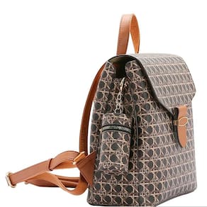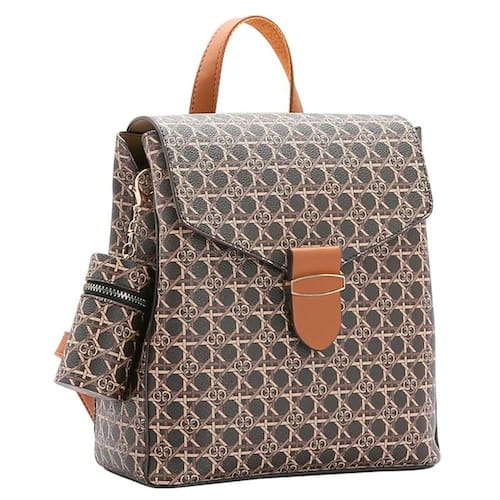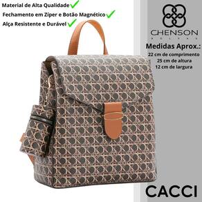 Mochila Feminina Chenson Linha Monograma Tramas Costas 8484490 Poliuretano, fechamento com fecho-éclair e botão magnético, forro em tecido personalizado, compartimento para pequenos objetos, 3 divisões, alça em poliuretano, acabamento em costura contrastante.