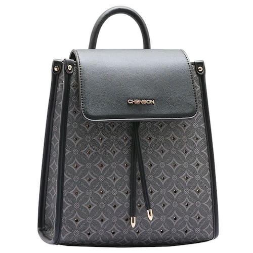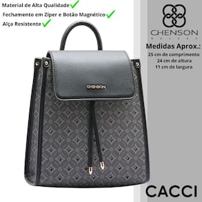 Mochila Feminina Chenson Passeio Monograma Cristal Costas 8484187 Poliuretano, fechamento com fecho-éclair e botão magnético, forro em tecido personalizado, compartimento para pequenos objetos, bolso interno, detalhes na frente com pedrarias cristais, alça em poliuretano, acabamento em costura contrastante.