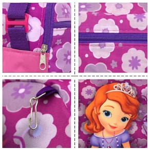 Kit Mochila Escolar Infantil Princesa Sofia Roxa, acompanha lancheira e estojo. Possui alça de mão reforçada. Agora você pode levar sua mochila no seu dia a dia ou acompanhar você na escola. Sua abertura maior se dá por zíper com puxador. Na parte de dentro possui amplo espaço para a guardar diversos materiais como cadernos, livros e estojos. Na parte da frente, possui bolso com zíper para a guardar pertences de menor tamanho e bolsos laterais.Características: Alça superior Estampa no bolso frontal Zíper metálico Bolso LateralMedidas Lancheira: Altura: 22cm Largura: 24cmMedidas Estojo: Altura: 10cm Comprimento: 23cmMedidas Mochila: Altura: 41cm Largura: 15cm Comprimento: 31cmDúvidas Frequentes:1. Ela possui alça ajustávelR. Sim, ela possui alça ajustável para melhor conforto.2. Ela possui estampa frontalR. Sim, ela possui estampa frontal3. Ela possui quantas divisõesR. Ela possui 03 divisões para guardar suas coisas.4. Qual o material da mochilaR. Ela é feita em poliéster e plástico.Tags: Mochila, Escola, Escolar, Princesa Sofia, Infantil, Costas, Passeio, Estojo, Lancheira, Bolsa, Menina, Juvenil, Reforçada, Desenho. Marca: Toys 2U