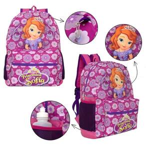 Kit Mochila Escolar Infantil Princesa Sofia Roxa, acompanha lancheira e estojo. Possui alça de mão reforçada. Agora você pode levar sua mochila no seu dia a dia ou acompanhar você na escola. Sua abertura maior se dá por zíper com puxador. Na parte de dentro possui amplo espaço para a guardar diversos materiais como cadernos, livros e estojos. Na parte da frente, possui bolso com zíper para a guardar pertences de menor tamanho e bolsos laterais.