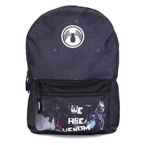 A Mochila Venom We Are Venom da Dermiwil é prática, resistente e perfeita para o uso escolar! Tem costas e alças acolchoadas com regulagem de altura, bolso frontal, alça de mão e uma estampa fantástica do Venom e Carnificina, grandes inimigos do Homem-Aranha da Marvel!