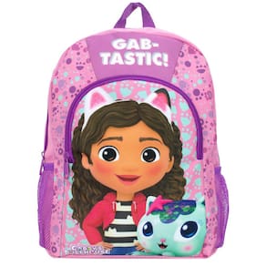 - Adorável mochila Gabbys Dollhouse: esta vibrante mochila infantil rosa e roxa exibe uma estampa grande de Gabby e sua amiga sereia mágica, Mercat. É uma mochila Mercat ideal para qualquer entusiasta de Gabby ou Mercat!