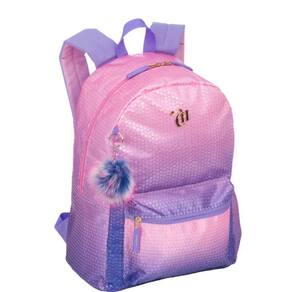 As cores rosa e lilás se destacam nessa linda mochila da Capricho, com uma textura em paetê que dá um brilho especial e vai fazer você se destacar Ela tem alças espumadas e ajustáveis à sua altura, além de amplo espaço interno e um bolso frontal com fechamento em zíper. Ah, repara só no pingente que vem junto. É um charme