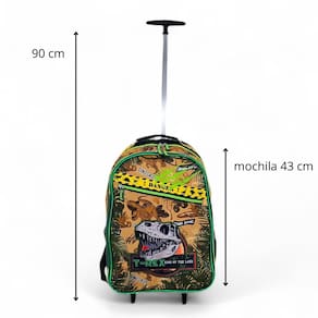 Design exclusivo de dinossauro, com cores vibrantes e compartimento tipo porta lapis canetaRodinhas super resistentes e haste moderno 1 puxador de alumínioAlças ajustaveis, resistente e acolchoadas dando opção de transporte nas costas com comodidadeEspaço interno bem distribuído para livros, cadernos e materiais, compartimento extra para laptopFecho seguro e fácil de abrir, perfeito para as criançascaracterísticas técnicas: