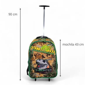 Mochila de Rodinha Dinossauro - Aventura e Estilo para os Pequenos Transforme a ida para a escola em uma verdadeira jornada com a mochila de rodinha dinossauro Super divertida e cheia de personalidade, ela vai encantar a criança enquanto Características: Design exclusivo de dinossauro, com cores vibrantes e compartimento tipo porta lapis caneta Rodinhas super resistentes e haste moderno 1 puxador de alumínio Alças ajustaveis, resistente e acolchoadas dando opção de transporte nas costas com comodidade Espaço interno bem distribuído para livros, cadernos e materiais, compartimento extra para laptop Fecho seguro e fácil de abrir, perfeito para as crianças Características técnicas: Medidas: 43 cm altura x 32 cm largura x 21 cm comprimento 17 capacidade 28 L peso Marca: Não Informado
