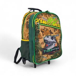 Mochila de Rodinha Dinossauro - Aventura e Estilo para os Pequenos Transforme a ida para a escola em uma verdadeira jornada com a mochila de rodinha dinossauro Super divertida e cheia de personalidade, ela vai encantar a criança enquanto Características: Design exclusivo de dinossauro, com cores vibrantes e compartimento tipo porta lapis caneta Rodinhas super resistentes e haste moderno 1 puxador de alumínio Alças ajustaveis, resistente e acolchoadas dando opção de transporte nas costas com comodidade Espaço interno bem distribuído para livros, cadernos e materiais, compartimento extra para laptop Fecho seguro e fácil de abrir, perfeito para as crianças Características técnicas: Medidas: 43 cm altura x 32 cm largura x 21 cm comprimento 17 capacidade 28 L peso Marca: Não Informado
