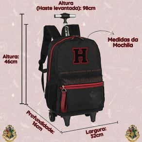 Mochila Harry Potter Rodinhas Meninos Escolar Juvenil Casual - Luxcel A Mochila Harry Potter com Rodinhas é a opção ideal para meninos que desejam unir praticidade, equipada com rodinhas resistentes e haste retrátil, oferece maior conforto ao transportar materiais mais pesados, permitindo que o estudante opte entre carregar nas costas ou puxar com facilidade. Seu amplo compartimento principal acomoda livros, cadernos grandes, pastas e estojo, enquanto o bolso frontal facilita o acesso rápido aos itens essenciais, conforto e o encanto do universo bruxo no dia a dia escolar. Características da Mochila: - Alças de Costas Acolchoadas e Reforçadas - Alça Ajustável - Pega de Transporte Manual - Bolso lateral para garrafa telado e bolso frontal utilitário - Puxadores Personalizados - Logo Atoalhado - Puxador Gigante - Fechamento em Zíper - Estampa envernizada mochila na cor preta - Aplique com acabamento bordado mochila na cor vermelha Especificações: - Marca: Luxcel/UP4YOU - Material: Poliéster - Medidas Aprox. Mochila AxLxP : 46cm x 32cm x 16cm - Capacidade Aprox. Mochila Litros : 23,5 litros - Polegadas da mochila: 18 - Cores: Vermelho e Preto - Tema: Harry Potter Conteúdo da Embalagem: Mc49742hp - 1x Mochila Harry Potter Rodas - Luxcel/Up4You As cores podem variar entre as imagens mostradas acima e o produto. Imagens meramente ilustrativas. Todas as informações divulgadas são de responsabilidade exclusiva do fabricante. de 90 dias contra defeito de fabricação. Marca: Não Informado