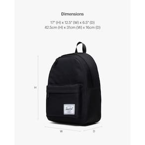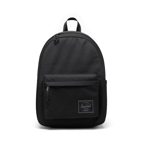 Herschel Mochila clássica Supply Co, Tonal preto (novo), Mochila clássica - Material ecológico: Feito de garrafas de água pós-consumo 100% recicladas, tanto o tecido durável EcoSystem 600D quanto o forro de listras tonais oferecem uma escolha sustentável para consumidores ambientalmente conscientes. - Proteção para laptop: possui uma capa flutuante projetada para caber e proteger com segurança laptops de 13 e 14 polegadas, garantindo que seu dispositivo permaneça seguro durante seu trajeto ou viagens. - Design conveniente: inclui um bolso para garrafa de água e um bolso frontal para fácil acesso aos itens essenciais, enquanto os fechos com zíper com cordão Prusik melhoram a segurança e a funcionalidade. - Transporte confortável: equipado com alças de ombro acolchoadas ajustáveis para um ajuste personalizado e máximo conforto, tornando-a ideal para uso diário ou viagens longas. - Marca distintiva: apresenta a etiqueta interna "Put Yourself Out There" e a aba de DNA listrada Herschel Supply, adicionando um toque de estilo e autenticidade à sua bolsa.