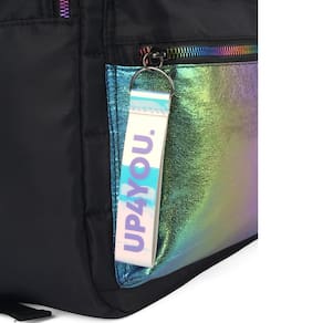 Mochila Holográfica Preta Up4you Larissa Manuela Luxcel é perfeita para levar no trabalho, passeios, faculdade ou em outros lugares trazendo conforto e praticidade na sua rotina do dia a dia. Possui compartimento principal com amplo espaço interno, um bolso com tecido holográfico na parte frontal para levar pequenos objetos. As alças são acolchoadas e reguláveis deixando a mochila mais leve e confortável. Mochila com design moderno e juvenil da coleção exclusiva da linha Up4you Larissa Manuela.