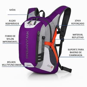 Mochila Impermeavel Esportiva Com Cinta Peitoral Para Bike Trilhas Corrida Camping Passeio Roxa Mochila ciclismo Resistente, Versátil e Ideal para Aventuras ao Ar Livre Seja em trilhas, pedaladas, corridas ou longas caminhadas, a Mochila de ciclismo é a companhia ideal para quem busca desempenho, conforto e praticidade. Com design ergonômico e materiais de alta durabilidade, ela oferece proteção e funcionalidade em qualquer ambiente. Destaques do Produto: Capacidade: espaço ideal para transportar seus itens com organização e segurança. Material impermeável: protege seus pertences mesmo em dias chuvosos. Almofada traseira respirável: proporciona ventilação eficiente e conforto durante o uso. Cinta barrigueira e peitoral ajustáveis: oferecem melhor fixação ao corpo.