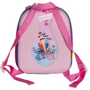Feita com material resistente, fácil de limpar e de alta qualidade, ela é perfeita para transportar livros, brinquedos, lanches e todos os pertences essenciais das crianças, unindo funcionalidade, durabilidade e a magia única da Disney para acompanhar seus momentos de diversão e aprendizado Especificações: Dimensões: 27cm altura x 9cm largura x 20cm Composição: 80% EVA, 20% Poliéster Peso: 280g Cor: Rosa Contém: 01 Mochila Infantil Stitch e Angel Tamanho P - Rosa