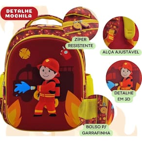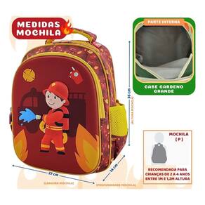 MOCHILA TAMANHO PRECOMENDADO PARA CRIANÇAS DE 2 A 4 ANOSTamanho Mochila:- Altura: 35cm- Largura: 27cm- Profundidade: 14cmA mochila possui:1 Bolso principal2 Bolsos frontais2 Bolsos lateraisFrente relevo 3dTamanho ideal para a fase da escolinha de educação infantil, pré-escola e fase inicial estudantil.A mochila cabe cadernos grandes de matéria e cadernos pequenos