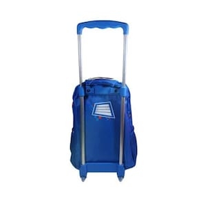 A mochila conta com alça de mão reforçada, etiqueta com identificação na parte traseira. Possui 2 rodinhas traseiras em gel. Material: 80% Poliéster 20%PVC Forro: 100% Poliéster