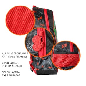 - 01 compartimento interno espaçoso. - 02 bolsos laterais de redinha para levar garrafas e itens menores. - alça de costas. - alça de mão. - as alças de costas são ajustáveis. - zíper duplo personalizado. - alças antitranspirantes.