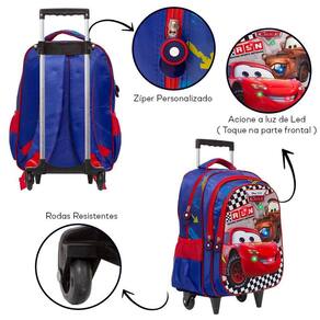 Mochila Escolar Infantil Carros Led Rodinhas possui alça de mão reforçada. Agora você pode levar sua mochila no seu dia a dia ou acompanhar você na escola. Sua abertura maior se dá por zíper com puxador. Na parte de dentro possui amplo espaço para a guardar diversos materiais como cadernos, livros e estojos. Na parte da frente, possui luzes de led que piscam na frente, tornando-a ainda mais divertida e atraente.