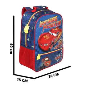 Mochila 16 Carros R Relâmpago Mcqueen Xeryus Em tamanho 16, é produzida em poliéster resistente. Painel frontal em PVC Cristal 3D estampado Bolso frontal com zíper tratorado Bolso telado nas laterais. Puxadores personalizados. Compartimento amplo para armazenagem dos materiais.