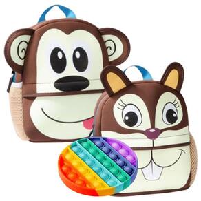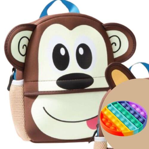 Mochila Infantil Escolar Creche Volta As Aulas Estampada Cor Café + Pop Up Fidget