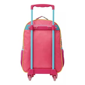 Capacidade da Mochila: 14L -Tamanho da Mochila (haste aberta): 72cm (altura) -Tamanho da Mochila (haste fechada): 35cm (altura) x 14cm (largura) x 27cm (comprimento). -Composição: PVC, Poliéster 420D, Metal e Rodinhas em gel. Desenho Do Tecido: Minnie Estilo: Escolar Indicado Para: Escola Material: Poliéster Modelo: 13191 Tipo De Mochila: Escolar Tipo De Suporte De Mancal: Puxador