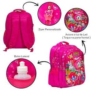 Mochila Infantil Feminina Amy Rose 3D Led Costas Toys 2U
