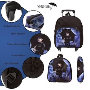Tags: Feminina, Infantil, Costas, Passeio, Estojo, Lancheira, Bolsa, Menina, Juvenil, Reforçada, Desenho, Personagem, Rodinha, Série, Wandinha.