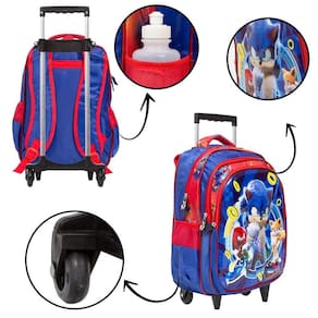 Mochila Escolar Infantil Sonic Rodinhas possui alça de mão reforçada. Agora você pode levar sua mochila no seu dia a dia ou acompanhar você na escola. Sua abertura maior se dá por zíper com puxador. Na parte de dentro possui amplo espaço para a guardar diversos materiais como cadernos, livros e estojos. Na parte da frente, possui bolso com zíper para a guardar pertences de menor tamanho.