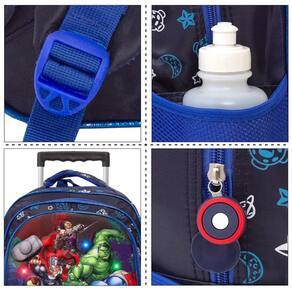 Mochila Escolar Infantil Vingadores Rodinhas possui alça de mão reforçada. Agora você pode levar sua mochila no seu dia a dia ou acompanhar você na escola. Sua abertura maior se dá por zíper com puxador. Na parte de dentro possui amplo espaço para a guardar diversos materiais como cadernos, livros e estojos. Na parte da frente, possui luzes de led que piscam na frente, tornando-a ainda mais divertida e atraente.