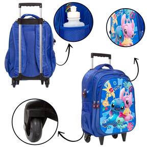 Mochila Escolar Infantil Stitch Rodinhas possui alça de mão reforçada. Agora você pode levar sua mochila no seu dia a dia ou acompanhar você na escola. Sua abertura maior se dá por zíper com puxador. Na parte de dentro possui amplo espaço para a guardar diversos materiais como cadernos, livros e estojos. Na parte da frente, possui bolso com zíper para a guardar pertences de menor tamanho.