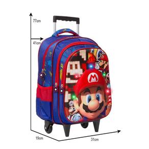 Mochila Escolar Infantil Super Mario Rodinhas possui alça de mão reforçada. Agora você pode levar sua mochila no seu dia a dia ou acompanhar você na escola. Sua abertura maior se dá por zíper com puxador. Na parte de dentro possui amplo espaço para a guardar diversos materiais como cadernos, livros e estojos. Na parte da frente, possui luzes de led que piscam na frente, tornando-a ainda mais divertida e atraente.