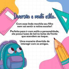 Características principais: Luz de Led, Estampa no bolso frontal, Zíper metálico, Alça reforçada.