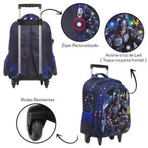 Mochila Infantil Menino Batman Rodinhas 3D Led Tamanho G