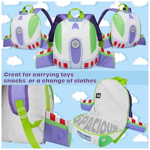 A mochila infantil Disney Toy Story Buzz Lightyear mini é indicada para crianças em idade pré-escolar, com corpo em poliéster leve, painel frontal temático do personagem e asas em relevo 3D, compartimento principal com fechamento em zíper para livros pequenos, cadernos, brinquedos e lancheira, além de alça superior para transporte manual e alças de ombro acolchoadas e ajustáveis para uso diário em escola, viagens e passeios. ? Ficha Técnica: