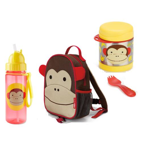 Mini Mochila Com Alça de Segurança Com Garrafa e Pote Térmico