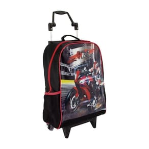 Mochila infantil confeccionada em Poliéster, material bastante resistente e painel frontal em PVC, que facilita a limpeza do produto, fixada a um carrinho em alumínio, proporcionando leveza e durabilidade, rodas em gel que suavizam o deslizar e puxador flexível.