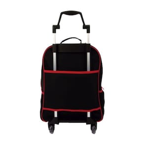 CARACTERÍSTICAS: Mochila confeccionada em Poliéster e PVC; Bolsos laterais; Carrinho em Alumínio, não enferruja; Peças plásticas produzidas em polipropileno copolímero, resistente a fortes impactos; Rodas em Gel.