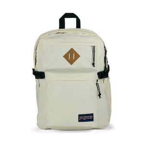 JanSport Campus principal, Coco, Tamanho único, Minimalista - Dois compartimentos principais para melhor espaço e organização, um bolso lateral de malha para garrafa se estica para caber em garrafas grandes - Compartimento dedicado para laptop acolchoado de 15 polegadas com fecho de zíper, bolso frontal com painel de organização completo e clipe para chave - Alças ergonômicas em forma de S para conforto e suporte de malha de ar para respirabilidade, clipe de chave mantém seus pertences presos com segurança - Tiras de compressão lateral com fivela para reduzir grandes cargas, forro 100% reciclado sem tingimento - Detalhe quadrado de amarração de couro, alça de alça na parte superior, pequeno bolso superior, puxador de zíper com cordão, painel traseiro totalmente acolchoado para conforto de uso prolongado