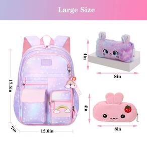 Esta mochila arco-íris tem aparência e qualidade excepcionais, com um design de vários bolsos de grande capacidade para necessidades de armazenamento diário, ideal para escola, caminhadas, viagens, compras, piqueniques, acampamento, caminhadas e uma variedade de atividades ao ar livre. Prestamos atenção a todos os processos do processo de fabricação e nos esforçamos pela excelência em todos os detalhes para garantir a melhor experiência possível do cliente. Se você tiver alguma dúvida ou sugestão sobre nossos produtos, sinta-se à vontade para entrar em contato conosco e ouviremos atentamente suas sugestões e as melhoraremos! - Bolsa extra para lápis: você receberá uma bolsa de livros arco-íris, um pingente de arco-íris e 2 lindas bolsas de lápis de pelúcia. - Material: prestamos atenção a todos os processos do processo de fabricação e buscamos a excelência em todos os detalhes para garantir a melhor experiência possível do cliente. Esta mochila infantil é feita de tecido de poliéster de alta qualidade e materiais impermeáveis de alta densidade, tornando-a resistente à abrasão e de longa duração, garantindo maior usabilidade. - Tamanho: Médio - 41 x 29 x 16 cm, Grande - 43 x 32 x 17 cm. Design de grande capacidade para atender às suas necessidades diárias de armazenamento. Tamanho da bolsa de caneta: 10 x 20 cm - Estrutura: Projetamos meticulosamente o espaço desta mochila, apresentando um compartimento principal espaçoso com bolsos dedicados ao compartimento para laptop. Além disso, a mochila inclui um bolso secundário com zíper que pode ser aberto em um ângulo de 180 graus, subdividido em seis bolsos menores. A frente da mochila tem cinco bolsos pequenos adicionais, enquanto a parte traseira possui um bolso com zíper antirroubo. Finalmente, existem dois bolsos laterais convenientes para guardar canecas de guarda-chuvas, etc. - Atenção aos detalhes: 1. As alças de ombro em forma de S (medindo 7 x 0,1 cm) são habilmente alargadas e engrossadas para distribuir o peso de forma eficiente e aliviar a pressão nos ombros. 2. Uma fivela ajustável no peito está incluída para reduzir qualquer tensão nos ombros. 3. As alças de ombro foram cuidadosamente projetadas com listras refletivas de alta visibilidade para viagens noturnas seguras. 4. A mochila também possui zíperes suaves e de alta qualidade que funcionam com facilidade e precisão.