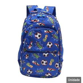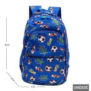 Mochila Juvenil 18'' 46cm Futebol Azul A Mochila Juvenil 18'' 46cm Futebol Azul é perfeita para os amantes de futebol! Com 46 cm de altura e 18 polegadas, oferece espaço ideal para carregar livros, materiais escolares e acessórios. Seu design vibrante traz desenhos de bola, chuteira e gol, deixando a mochila ainda mais divertida e tematicamente ligada ao universo do futebol. A cor azul e os detalhes fazem dela uma escolha estilosa e cheia de personalidade. Sua estrutura inclui 4 compartimentos com zíper e 2 bolsos laterais para garrafas, proporcionando amplo espaço e organização. Ideal para o dia a dia, essa mochila combina funcionalidade, conforto e um visual cheio de cor e personalidade.\nEspecificações;\nMarca : Tings\nTipo de material : Poliéster\nCores ou Estampa : Azul\nDimensões do Produto : 46 X 36 X 18,5 CM\nDimensões da Embalagem : 46 X 36 X 3 CM\nPeso Bruto (Gramas) : 0.532