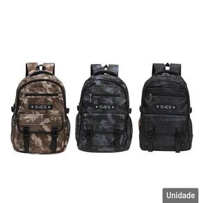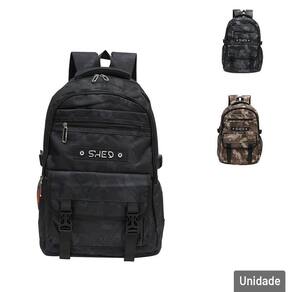 Mochila Juvenil 18,5'' 47cm Camuflada Color A Mochila Juvenil 18,5'' 47cm Camuflada Color é a opção perfeita para quem busca praticidade, conforto e um design moderno para o dia a dia. Com um visual camuflado arrojado e detalhes coloridos, essa mochila traz um toque de estilo único para os jovens. Feita em Poliéster, ela é resistente e ideal para enfrentar a rotina escolar, passeios e aventuras. Sua estrutura funcional inclui 2 compartimentos principais com zíper, oferecendo amplo espaço para guardar livros, cadernos, materiais de escola ou objetos pessoais. Além disso, conta com 2 bolsos frontais, sendo um com zíper e o outro com fecho, para facilitar o acesso a itens menores. Para mais praticidade, a mochila possui 2 bolsos laterais, perfeitos para carregar garrafinhas ou pequenos acessórios.\nO conforto é garantido com as alças ajustáveis, que se adaptam ao corpo, e a alça superior, que proporciona versatilidade no transporte, seja para carregar pela mão ou nas costas. Com bastante espaço e praticidade, a Mochila Juvenil Camuflada Color é a escolha ideal para quem busca uma mochila completa, confortável e cheia de estilo para qualquer ocasião.\nDisponível em cores.\nEspecificações:\nMarca : Tings\nTipo de material : Poliéster\nCores ou Estampa : Color\nDimensões do Produto : 47 X 34 X 16 CM\nDimensões da Embalagem : 50 X 33 X 4,5 CM\nPeso Bruto (Gramas) : 0.854