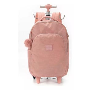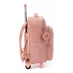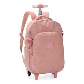 Mochila Escolar Linha Larissa Manoela com Rodinhas e Chaveiro Pompom.