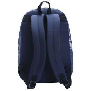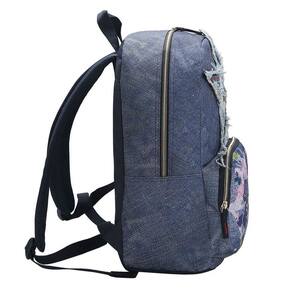 Espaçoso compartimento principal. Alças retas e almofadadas. Bolso frontal com divisórias. Painel traseiro parcialmente almofadado. Alça de mão na parte superior. Algumas estampas não são centralizadas e por isso, a posição do desenho pode variar em certos modelos devido ao recorte do tecido.
