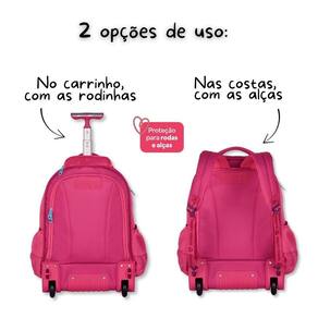 Este Kit é a combinação perfeita para quem busca elegância, organização e muita praticidade no dia a dia escolar. A mochila RB26222 é um modelo super premium da Rebecca Bonbon, desenvolvida em material soft com acabamento em jacquard, trazendo um visual moderno, resistente e muito sofisticado. Possui zíperes coloridos, cadarço logado acetinado e estampa personalizada que dão um charme único à peça. O compartimento principal é extremamente espaçoso e conta com espaço reservado para notebook, garantindo praticidade para a rotina escolar. Na parte frontal, ela oferece mais três compartimentos com fechamento por zíper, incluindo dois bolsos estilosos que facilitam a organização dos itens do dia a dia. Nas laterais, bolsos telados perfeitos para garrafinhas ou objetos de acesso rápido. O modelo é 2 em 1, podendo ser tanto nas costas, com alças acolchoadas super confortáveis, quanto no modo carrinho, com puxador e rodinhas resistentes. Quando Utilizado nas costas, voce pode prroteger as rodinhas para não sujar sua roupa Acompanha chaveiro-tag de borracha e penduricalhos exclusivos da marca. Dimensões aproximadas: 48x35x19cm. O kit acompanha o Estojo Box RB26226, confeccionado no mesmo material soft com silk exclusivo, zíperes coloridos e cadarço logado acetinado. Possui 36 elásticos internos para lápis e canetas e ainda conta com um estojo interno adicional com fechamento próprio, garantindo organização extra. Sua capacidade total comporta cerca de 100 lápis ou canetas, com dimensões aproximadas de 22x16x6cm. A lancheira RB26228 é confeccionada em material resistente, com revestimento térmico que mantém os alimentos na temperatura ideal. Possui compartimento principal espaçoso e mais dois bolsos frontais, todos com fechamento por zíper, além de bolsinhos telados nas laterais. Seu grande diferencial são as alças versáteis: pode ser Utilizado como mochilinha nas costas, no ombro com a alça transversal ou pela alça superior de mão, garantindo praticidade e conforto no dia a dia. Dimensões aproximadas: 27x20x12cm. Um conjunto completo, moderno e perfeito para quem deseja qualidade premium e organização impecável todos os dias.