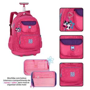 Este Kit é a combinação perfeita para quem busca elegância, organização e muita praticidade no dia a dia escolar. A mochila RB26222 é um modelo super premium da Rebecca Bonbon, desenvolvida em material soft com acabamento em jacquard, trazendo um visual moderno, resistente e muito sofisticado. Possui zíperes coloridos, cadarço logado acetinado e estampa personalizada que dão um charme único à peça. O compartimento principal é extremamente espaçoso e conta com espaço reservado para notebook, garantindo praticidade para a rotina escolar. Na parte frontal, ela oferece mais três compartimentos com fechamento por zíper, incluindo dois bolsos estilosos que facilitam a organização dos itens do dia a dia. Nas laterais, bolsos telados perfeitos para garrafinhas ou objetos de acesso rápido. O modelo é 2 em 1, podendo ser tanto nas costas, com alças acolchoadas super confortáveis, quanto no modo carrinho, com puxador e rodinhas resistentes. Quando Utilizado nas costas, voce pode prroteger as rodinhas para não sujar sua roupa Acompanha chaveiro-tag de borracha e penduricalhos exclusivos da marca. Dimensões aproximadas: 48x35x19cm. O kit acompanha o Estojo Box RB26226, confeccionado no mesmo material soft com silk exclusivo, zíperes coloridos e cadarço logado acetinado. Possui 36 elásticos internos para lápis e canetas e ainda conta com um estojo interno adicional com fechamento próprio, garantindo organização extra. Sua capacidade total comporta cerca de 100 lápis ou canetas, com dimensões aproximadas de 22x16x6cm. A lancheira RB26228 é confeccionada em material resistente, com revestimento térmico que mantém os alimentos na temperatura ideal. Possui compartimento principal espaçoso e mais dois bolsos frontais, todos com fechamento por zíper, além de bolsinhos telados nas laterais. Seu grande diferencial são as alças versáteis: pode ser Utilizado como mochilinha nas costas, no ombro com a alça transversal ou pela alça superior de mão, garantindo praticidade e conforto no dia a dia. Dimensões aproximadas: 27x20x12cm. Um conjunto completo, moderno e perfeito para quem deseja qualidade premium e organização impecável todos os dias.