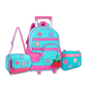 O Kit Escolar Juju Teófilo foi criado para oferecer praticidade, organização e muito estilo às rotinas escolares. Ele reúne três itens essenciais: Mochila, Lancheira Térmica e Estojo Box. A mochila de carrinho da coleção Juju Teófilo é puro encanto e foi pensada para acompanhar as pequenas com muito estilo, conforto e praticidade na rotina escolar. Confeccionada em poliéster soft com acabamento em matelassê, ela traz patches emborrachados e de tecido que deixam o visual ainda mais delicado e divertido, além de acompanhar um charmoso chaveiro de cerejinhas e uma bolsinha exclusiva que completa o look de forma única. Possui compartimento principal amplo, ideal para organizar materiais escolares, pastas ou até uma troca de roupinhas, além de um compartimento frontal espaçoso com divisórias internas que ajudam a manter tudo no lugar. Na parte frontal, conta ainda com mais um bolso adicional de fácil acesso, perfeito para pequenos objetos, e bolsos telados nas laterais para garrafinhas ou itens de uso rápido. O carrinho com haste retrátil facilita o transporte no dia a dia, garantindo conforto também para crianças menores. As alças permitem o uso nas costas quando necessário, oferecendo versatilidade no uso. Dimensões aproximadas: 40x30x13cm. Lancheira Térmica JU26303: Conta com compartimento principal com revestimento térmico, perfeito para manter lanches e bebidas na temperatura ideal. Fechamento em zíper, bolsinho frontal prático, alça transversal para uso confortável e alça carona para acoplar diretamente na mochila. Dimensões: 23 20 11 cm. Estojo Box: Estojo amplo com estrutura firme e elásticos internos para acomodar até 36 lápis. Inclui um compartimento interno adicional, separado, também com fechamento por zíper. Dimensões: 22 16 6 cm. Este conjunto oferece organização completa, alta durabilidade e o visual exclusivo da coleção Juju Teófilo, garantindo um kit completo, funcional e cheio de personalidade. Marca: Não Informado