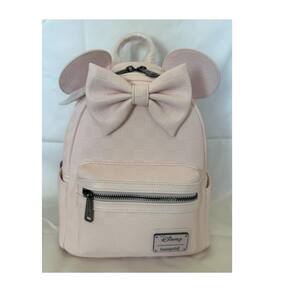 Loungefly Minismochila Minnie Mouse com textura quadriculada - Características: couro vegano (poliuretano), alças ajustáveis, bolso frontal com zíper, bolsos laterais, pingente de zíper de couro vegano, ferragens de metal, apliques, gravado, laço 3D e detalhes impressos e forro interno combinado. - Esta mochila é um produto oficialmente licenciado pela Disney.