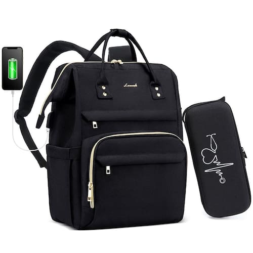 Experimente a combinação perfeita de estilo e funcionalidade com nossa mochila LOVEVOOK Nurser. Esta mochila unissex moderna é projetada com uma capa macia e cor preta sólida, com uma forma retangular e um fecho de zíper. É uma mochila para o dia, perfeita para enfermeiros, médicos ou qualquer pessoa em movimento. A mochila está equipada com uma capa rígida de estetoscópio, mantendo seus itens essenciais médicos seguros e protegidos. O compartimento principal é espaçoso, cabe em um laptop de 15,6 polegadas e possui um interior acolchoado com um cinto à prova de choque para proteger seu dispositivo. A mochila também inclui uma porta de carregamento USB, permitindo que você carregue seu telefone em qualquer lugar. Com 19 bolsos, incluindo um bolso antirroubo e uma alça de bagagem para facilitar a viagem, esta mochila foi projetada com a conveniência em mente. As alças de ombro respiráveis e ajustáveis e o design traseiro com fluxo de ar garantem conforto durante o uso prolongado. Instruções de cuidados: lavar apenas à mão. - [Estojo rígido para estetoscópio]: esta capa de estetoscópio é projetada com tecido Oxford durável e EVA rígido para evitar danos ao seu estetoscópio. É equipada com uma delicada alça de pulso para facilitar o transporte. O design de zíper duplo pode garantir a colocação segura do conteúdo. É um presente perfeito para enfermeiros. Dimensões: 10 cm C x 28 cm A x 7 cm L. - [Transporte confortável]: esta mochila para laptop combina um design antirroubo e um design de alça de bagagem invisível, que é conveniente para colocar seus pertences quando você sair, como cartões de crédito, passaportes e telefones celulares. A alça de bagagem inteligente pode ajudar a liberar suas mãos e costas, tornando sua viagem mais segura e fácil. - [Maior capacidade]: a mochila para computador de 15,6 polegadas é projetada com tecido de poliéster durável. Dimensões: 30 cm C x 40 cm A x 19 cm L. O interior acolchoado protege seu laptop. O cinto interno à prova de choque pode proteger seu laptop para evitar que ele deslize e colide, o que mantém os produtos em sua bolsa organizados. - [Porta USB]: esta mochila será equipada com um cabo de dados móvel que se conectará à porta USB na lateral com você, permitindo que você carregue facilmente seu telefone enquanto caminha. - Armazenamento conveniente: esta bolsa de enfermeira usa um design de zíper aberto, o que torna as coisas na parte inferior mais fáceis de retirar. O design resistente à mão permite que você aproveite uma variedade de estilos de métodos elegantes nas costas. O design de zíper suave e o espaço de armazenamento espaçoso podem não apenas atender às necessidades diárias, mas também é muito adequado para esportes ao ar livre, como viagens, acampamento, negócios, universidade e outras atividades ao ar livre.