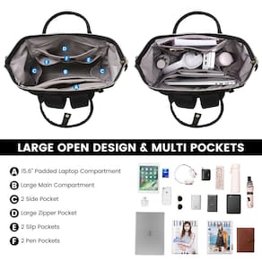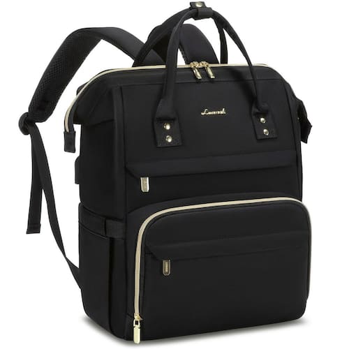 LOVEVOOK Mochila feminina para laptop de 15,6 polegadas, mochila para professores, bolsa de enfermeira, à prova d'água para trabalho, viagem, faculdade, Z - preto, Mochilas Daypack - Durabilidade aprimorada: a mais recente mochila feminina para laptop da Lovevook possui tecido impermeável e resistentes a rasgos e zíperes robustos. Alças reforçadas suportam cargas pesadas - Espaço de armazenamento espaçoso: com um design aberto adequado para professores, experimente embalar facilmente. 2 compartimentos e 18 bolsos para guardar tudo: laptop, livros didáticos, fichários e itens pessoais - Proteção avançada: Proteja seus eletrônicos com compartimentos acolchoados dedicados para laptops e tablets. Além disso, proteja objetos de valor contra roubo com um bolso traseiro discreto e antirroubo - Carregamento sem esforço: mantenha-se ligado em movimento com uma porta de carregamento USB integrada, completa com um cabo integrado — basta conectar um carregador portátil (não incluído) para carregar sem interrupções - Elegância versátil: ideal para o trabalho, viagens ou faculdade, esta mochila elegante é um presente atencioso para profissionais e amantes, perfeita para todas as ocasiões e celebrações